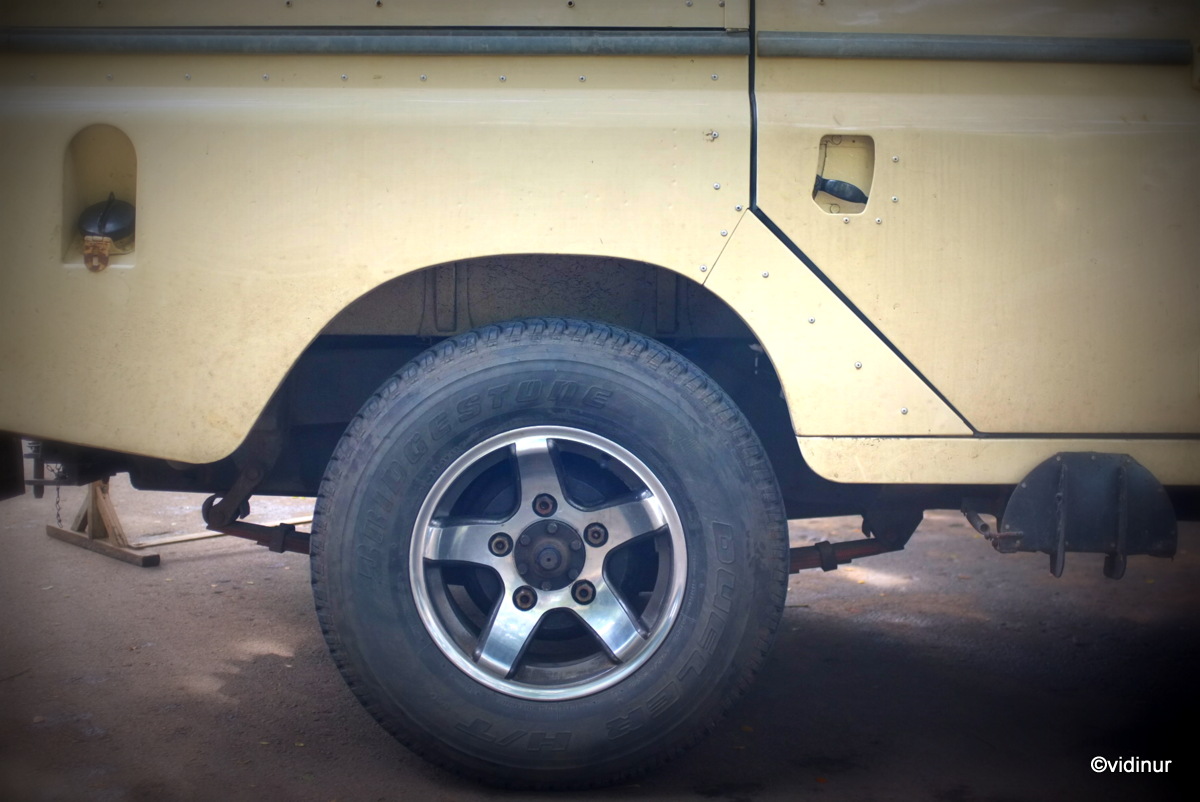 Now, something is not quite right… it seems too low for a land rover, my tire now is around 31 inch diameter, while my steel rim, will have around 32 inch diameter, hence now my Landy is a seems a bit cute.. :)