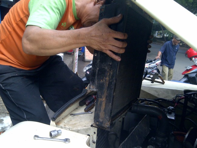 Now I have two options curing this problem… I can change the radiator with brand new as the radiator is having the same age as the car… or I can mend / patch it… brand new radiator is US$ 180, while patching it will cost me US$15 which include cleaning inside the radiator… no brainer I choose the cheaper one… but I promise my self to save for new radiator int he future.. :)