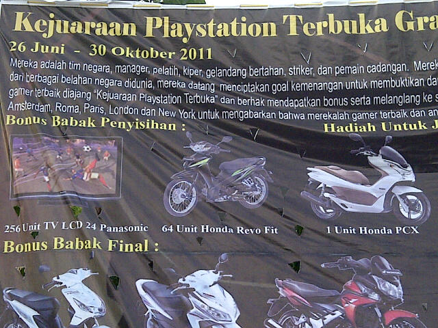 Baru saja beberapa hari yang lalu saya posting tentang E-Sport, ternyata saya menjumpai balihoo besar tentang turnamen play station.