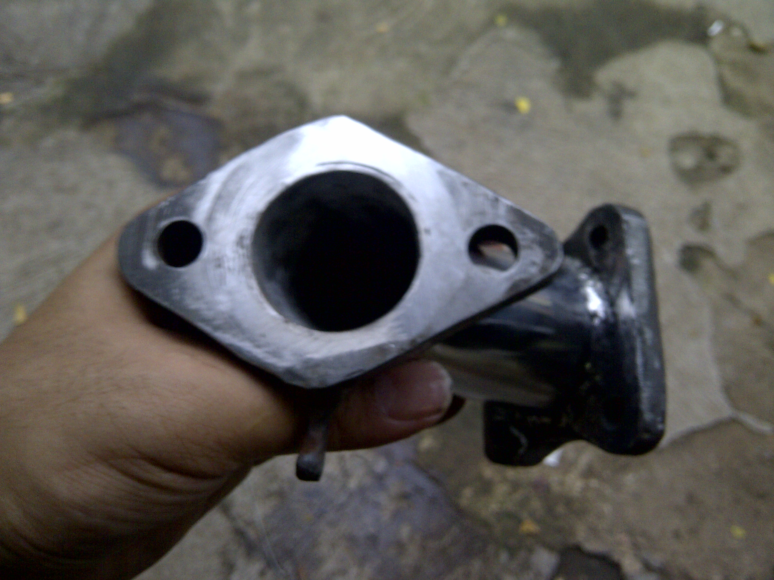 Now lets make the manifold / bracket or anything you called to attach the carb to inlet manifold. The easiest way is go to a garage that have access on lathe and ask them to set it up for you. for my case I have to go to two different special garage, one is to make the base (two bases as you can see here: one goes to carb and one goes to manifold) the the other garage (exhaust specialist) to make the connection pipe and set it up in the landy. Here is the manifold ready to be installed.